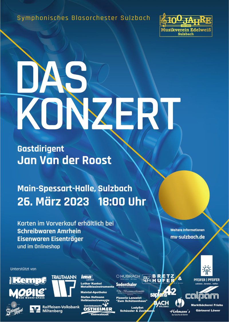 Neben dem Jubiläumsfest im Sommer und einem Filmkonzert im Herbst, bereitet sich das Symphonische Blasorchester auf „Das Konzert“ am 26. März mit dem Komponisten Jan van der Roost vor.