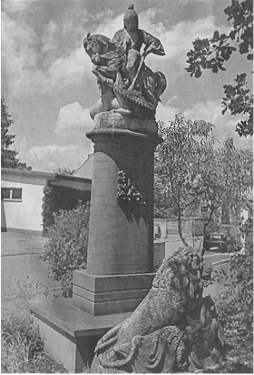 Eine Statue von St. Georg und drei Löwenskulpturen prägen das Sulzbacher Kriegerdenkmal, das an den Deutsch-Französischen Krieg erinnert. Jetzt wurde es 100 Jahre alt. Foto: Helmut Gesierich