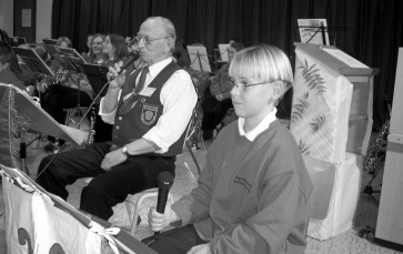 Andreas Hock und Markus Hein umrahmten den Auftritt von Adolf Eisenträger (mit 69 Jahren zweitältester Aktiver) und Alex Sommer (mit zehn Jahren der Jüngste), die für amüsante Kurzweil sorgten mit einem Zwiegespräch: »Wie war´s früher bei den Musikern und was bewegt die Jugend heute?«
