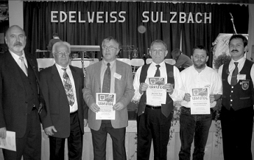 Ehrenvorsitzender wurde das bisherige Ehrenmitglied Burkhard Grein, der sich seit 1945 um den Verein verdient gemacht hat. Zum Ehrendirigenten ernannt wurde Guillermo Ruiz, Dirigent des französischen Partnermusikvereins »Zarpai Banda« aus Hendaye, der seit 1980 fast jährlich nach Sulzbach kommt und oft im Musikverein mitgespielt hat.