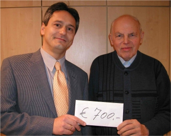 p20070208Sulzbach. In der Jahresversammlung des Musikvereins Edelweiß überreichte Vorsitzender Hermann Seitz (links) einen Scheck über 700 Euro an den Vorsitzenden des Sozialkreises Sulzbach, Hermann Amrhein. Dies ist der Reinerlös aus einem Benefizkonzert mit dem Heeresmusikcorps 12 im November. In seinen Dankesworten informierte Amrhein, dass das Geld für Bedürftige in Sulzbach sowie in Polen und Argentinien bestimmt sei.