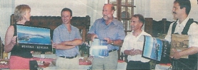 La Zarpaï Banda et le groupe musical les Edelweiss de Sulzbach, en Allemagne, étaient présents à l’hôtel de ville mercredi. De 10 heures à 20 heures, sur la place de la République, une trentaine de musiciens du groupe allemand ont joué plusieurs compositions musicales fort appréciées. Puis Kote Ecenarro, entouré de Vincent Cabantous et Herman Setz (Anm. des Webmasters: Hiermit ist unser 1. Vorsitzender Hermann Seitz gemeint), présidents respectifs de la Zarpaï Banda et des Edelweiss, a tenu à les recevoir pour fêter plus de trente ans de relations fidèles entre les deux groupes.