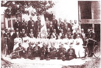 Dieses Bild wurde vor 1913 aufgenommen. Der Herr rechts neben der Fahne ist Anton Weigand, der im Januar 1913 starb.